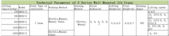 Long Life 1t Wall Mounted Jib Cranes with 360-degree Rotation